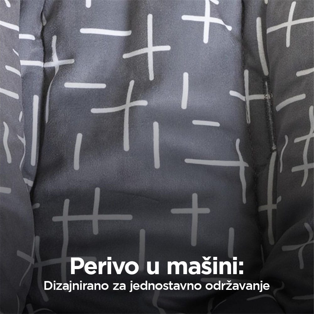 Podloga je izradjena od antialergijske plisane tkanine koja je ugodna na dodir i dovoljno njezna za osjetljivu bebinu kozu. Zahvaljujuci reverzibilnom dizajnu, moguce je koristiti obje strane podloge, sto dodatno povecava prakticnost i produzava svakodnevnu iskoristivost proizvoda. Dodatni sloj mekoce i potpore moze pomoci da boravak u lezaljci bude prijatniji, bilo da se beba odmara, smiruje ili provodi kratko vrijeme budna uz roditelje.