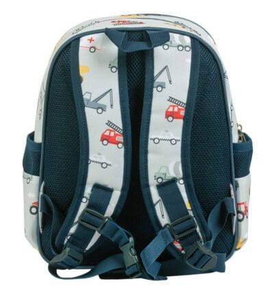 Reflektirajući elementi na naramenicama povećavaju vidljivost djeteta pri slabom svjetlu. Unutarnje obloge pružaju zaštitu školskim potrepštinama. Model je kompatibilan s A Little Lovely Company kutijama za ručak i pernicama istog uzorka. Veseli uzorak „Vehicles“ potiče maštu i unosi zabavu u svaki dan.