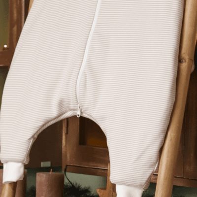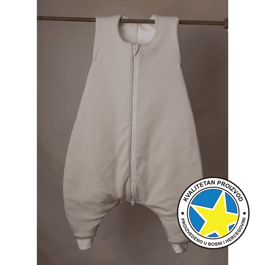 Zatvarač koji se nalazi na dnu vrećice omogućava roditeljima brzo i jednostavno presvlačenje bebe tokom noći. Zahvaljujući ovom praktičnom rješenju, nema potrebe za potpunim skidanjem vreće, čime se beba manje uznemirava. Materijal je prozračan i nježan prema koži, dok uzorak sive boje sa prugama donosi moderan izgled koji se lako uklapa u svaki dječiji enterijer.