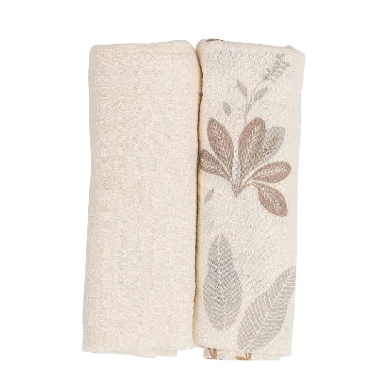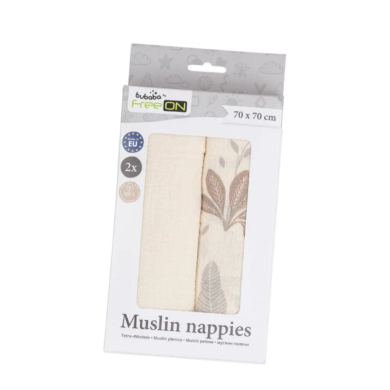 Unesite nježnost i prirodnu svježinu u bebinu svakodnevicu uz BUBABA muslin pelene dimenzija 70 × 70 cm. Ove pelene, u motivu lisnatog dizajna, savršeno kombiniraju funkcionalnost, eleganciju i udobnost.