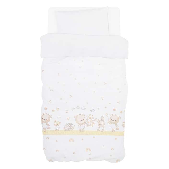 Ova predivna posteljina u dezenu Happy Friends unijet će dozu čarolije u svaku sobicu. Zahvaljujući modernom dizajnu, pažljivo odabranim bojama i obostranoj upotrebi, posteljina se savršeno uklapa u svaki ambijent i stvara ugodan kutak za spavanje.