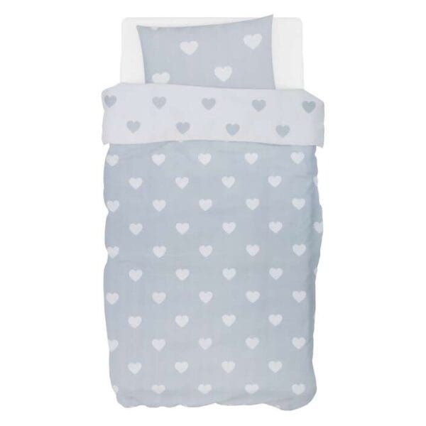 Mirni snovi znače sretno dijete! Bubaba by FreeON posteljina pretvara dječju posteljicu u čarobno mjesto za odmor. Mekana, prozračna i nježna na dodir, obavija bebin svijet udobnošću i toplinom. S veselom živopisnom temom Sivo srce unosi razigranost i vedrinu u dječiju sobicu.