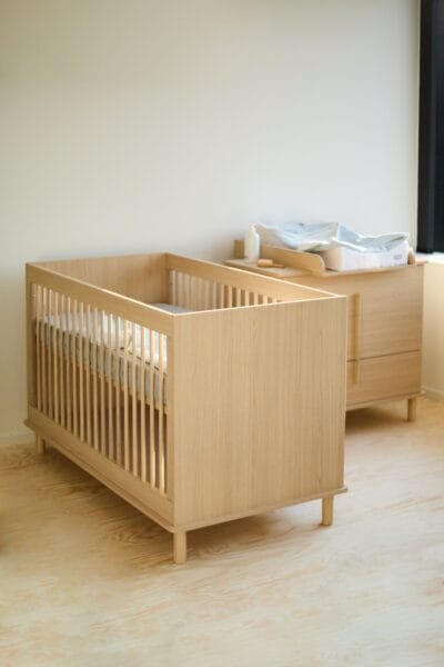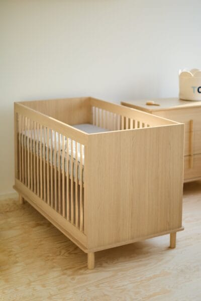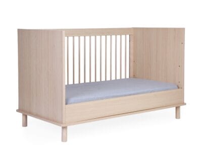 Childhome dječiji krevetić Nordica Natural pruža sigurnost i udobnost od rođenja do 6. godine. Letvičasta podnica može se podesiti na tri visine, a jedna bočna stranica se može potpuno ukloniti kako bi se krevet pretvorio u krevet za malu djecu.