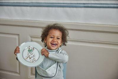 Set je izrađen od visokokvalitetnog porculana, nježan prema dječijoj koži i jednostavan za držanje. Lagano zakrivljeni oblici tanjira i zdjele olakšavaju hranjenje i podstiču samostalnost pri obroku.