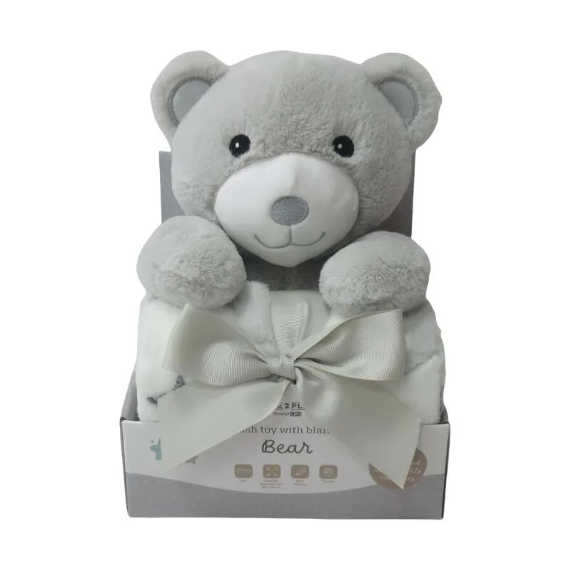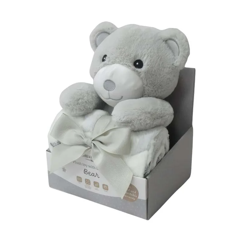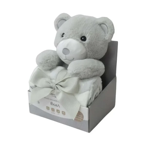 Ovaj set nudi više od obične dekice — pruža osjećaj sigurnosti, topline i bliskosti koje svaki mališan zaslužuje. Plišanac postaje prvi prijatelj, a dekica pouzdana pratnja za spavanje, igru ili putovanje. Neutralna siva boja i kvalitetni materijali čine ga praktičnim i estetski privlačnim izborom za svakodnevnu upotrebu.