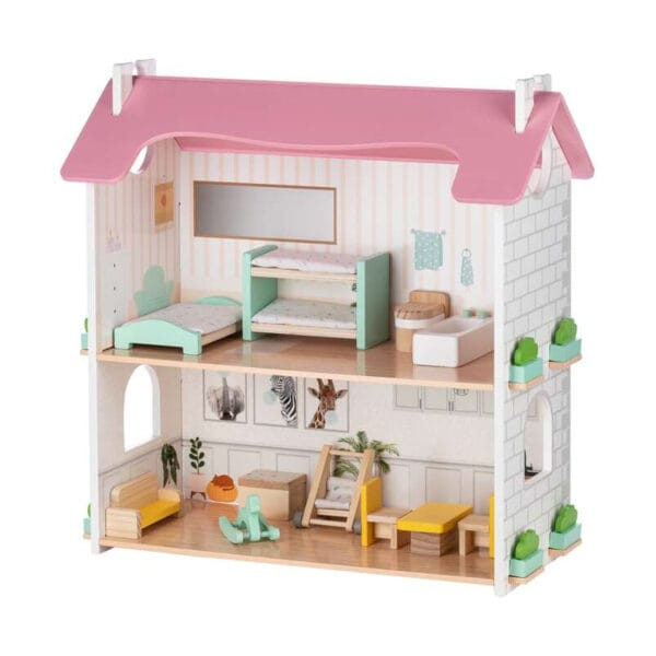 Free2Play drvena kućica sa namještajem Lotti pretvara dječju sobu u mali svijet mašte, kreativnosti i priče. Ova pažljivo dizajnirana kućica izrađena je od kvalitetnog drveta, s pažljivo obrađenim rubovima i sigurnim bojama, pružajući sigurno i trajno okruženje za igru. Uz više prostorija poput kuhinje, spavaće sobe i dnevnog boravka, dijete može smišljati razne scenarije, stvarati priče i razvijati socijalne vještine kroz ulogu i komunikaciju.