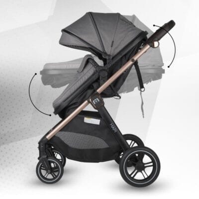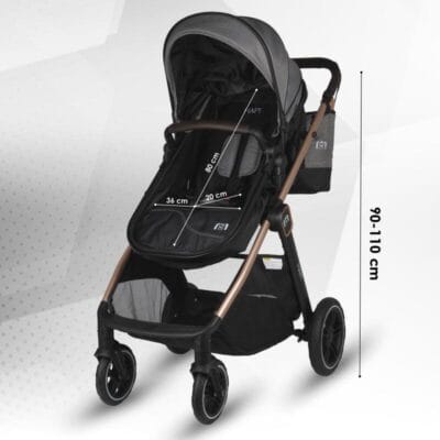 Lagani, ali čvrsti aluminijski ram, veliki PU točkovi i sistem suspenzije omogućavaju stabilnu i ugodnu vožnju na različitim terenima. Reverzibilno sjedište omogućava da beba bude okrenuta prema roditelju ili prema pravcu kretanja, dok sigurnosni pojas u 5 tačaka pruža dodatnu zaštitu tokom svake šetnje.