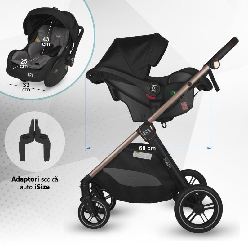 Sa sofisticiranim Copper Matte ramom, modernim tekstilnim materijalima i elegantnim detaljima od camel brown eko kože, Coccolle® Hapi Soley 3u1 predstavlja savršen spoj funkcionalnosti, sigurnosti i luksuznog dizajna. Dostupan je u bojama Jet Black, Smoked Grey i Simply Taupe.