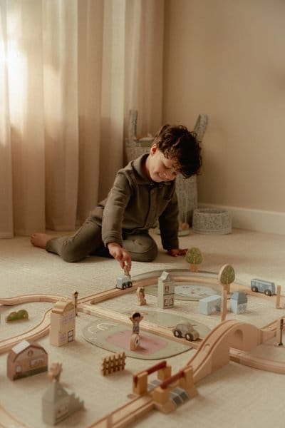Ovaj veliki set sadrži lokomotivu, vagone, tračnice, mostove, zgrade, automobile i figure, kao i drveće i saobraćajne znakove. Mogućnosti za igru su beskrajne! Provozajte vozić preko mosta, zaustavite se na stanici i istražite grad.