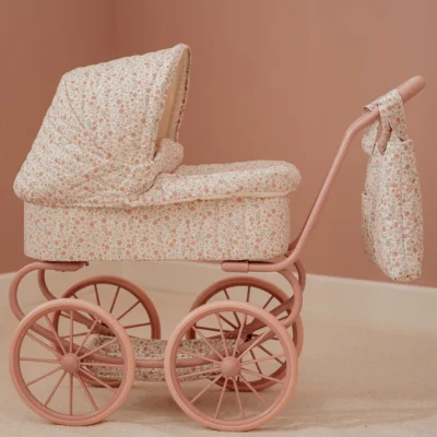 Unutrašnjost dolazi s mekanim dušekom za lutku, a ispod kolica se nalazi praktična korpa za odlaganje igračaka i sitnica. Metalni okvir pruža dodatnu čvrstoću, a ručka s mekanim gripom savršeno se prilagođava malim dječijim rukama.
