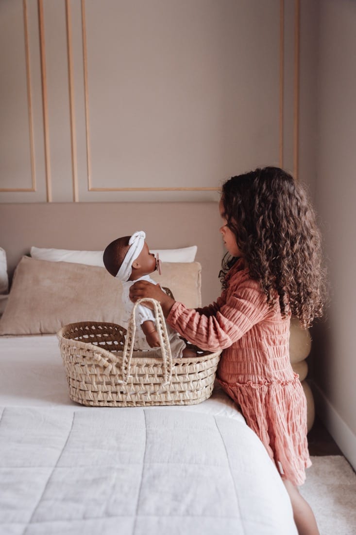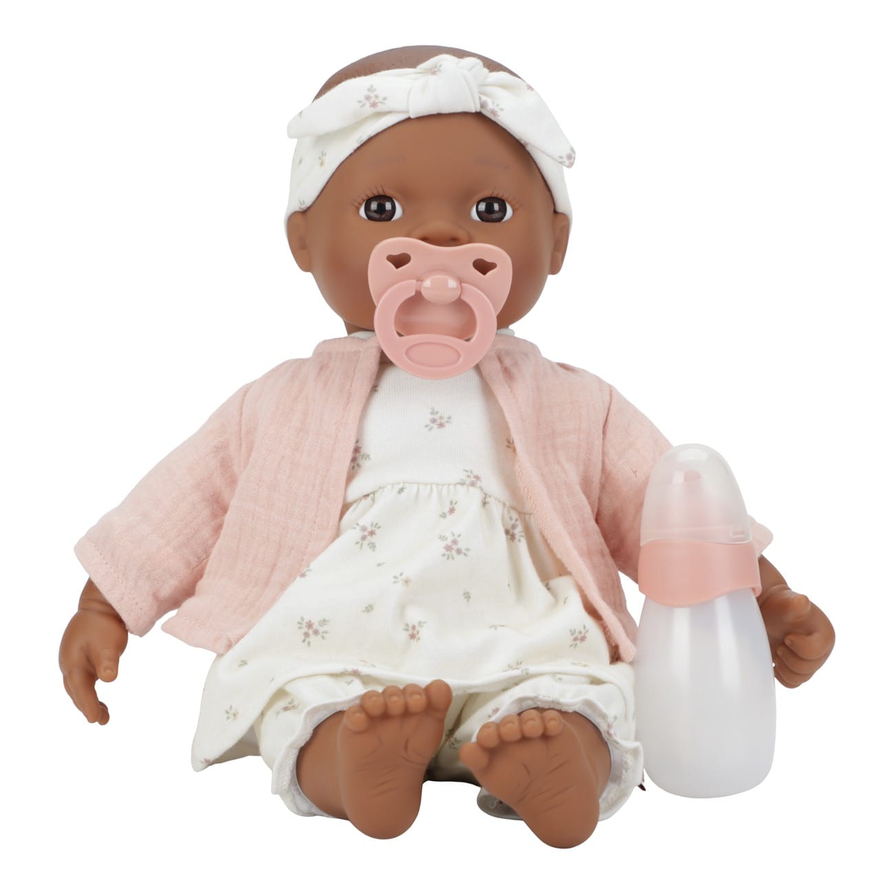 Noa je prekrasna i prava djevojka mekog i ljupkog tijela koja voli biti voljena. Grli je i čuvaj je. Možete je presvući, pomoći joj da zaspi i umiriti je dudom. Kad je gladna, ponudite joj bočicu mlijeka. Djeca vole oponašati sve što rade njihovi roditelji, a ova će beba lutka nadahnuti vašeg mališana da se uključi u igru uloga. Noa je odjevena u dizajnersku haljinu White Meadows, hlače i traku za glavu te nježno ružičasti prsluk. Oblačenje potiče finu motoriku, a duda i bočica za mlijeko dodaju element interaktivne igre.