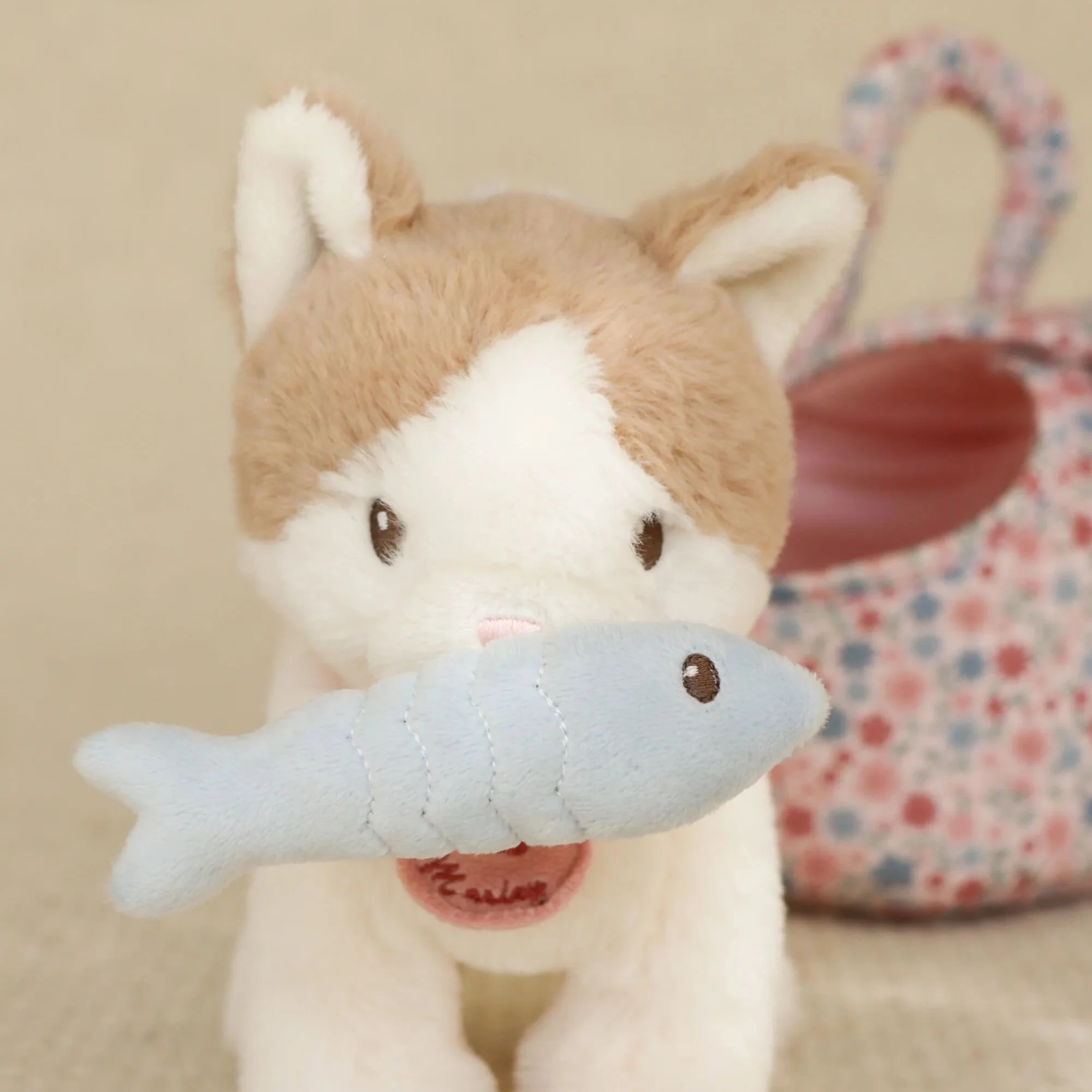 Little Dutch Mačka Marley u torbi savršen je pratilac za igru, maženje i putovanja. Ova šarmantna plišana mačka dolazi u kompletu s cvjetnom platnenom torbom, roza ovratnicom s imenom i malom svjetloplavom ribicom kao igračkom dodatkom. Marley je izrađena od mekanog 100 % poliestera, koji je siguran i ugodan na dodir, što je čini idealnom za zagrljaje i igru.