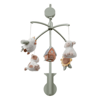 Little Dutch muzički vrtuljak Little Farm pruža umirujuće melodije i vizualnu stimulaciju za vaše novorođenče. Dizajniran da se jednostavno pričvrsti na krevetić ili kolijevku, ovaj vrtuljak stvara nježno okruženje koje pomaže u uspavljivanju bebe. Muzička kutija svira poznatu uspavanku “Somewhere over the rainbow”, stvarajući osjećaj sigurnosti i smirenosti.