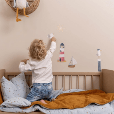 Little Dutch naljepnice Sailors Bay unose bajkovitu atmosferu u svaku dječju sobu. Ove visokokvalitetne zidne naljepnice s luksuznim mat završnim slojem idealne su za roditelje koji žele dodatno uljepšati prostor i podstaći maštu svoje djece kroz igru i priču.