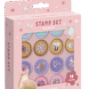 Set štambilja Fairy Garden sadrži 16 pečata koji imaju u poklopcu tintu.