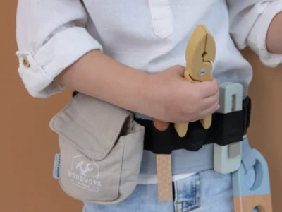 Pojas je podesiv i izrađen od čvrstih materijala, a alati su drveni i sigurni, obojeni netoksičnim bojama na bazi vode. Idealno za mališane koji vole da imitiraju odrasle i uče kroz igru. Alat za djecu koji ne samo da zabavlja, već i podstiče razvoj fine motorike i samopouzdanja.