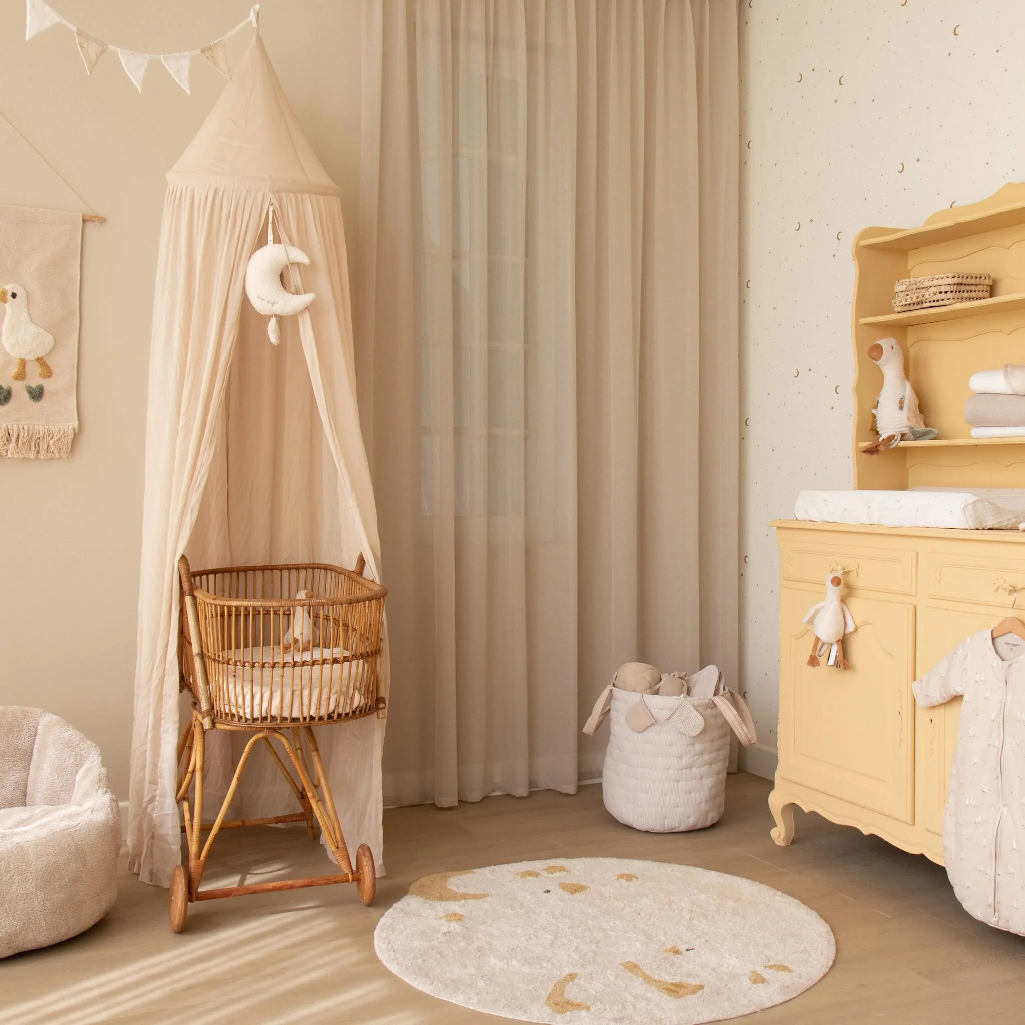 Little Dutch tepih Guska Newborn Naturals unosi nježnost i mir u svaku dječiju sobu. Izrađen od 100 % organskog pamuka, ovaj tepih pruža meku i sigurnu podlogu za igru, puzanje i prve korake. Njegova površina je ugodna na dodir i dovoljno prozračna da spriječi zadržavanje topline, čineći ga idealnim za cjelodnevno korištenje.