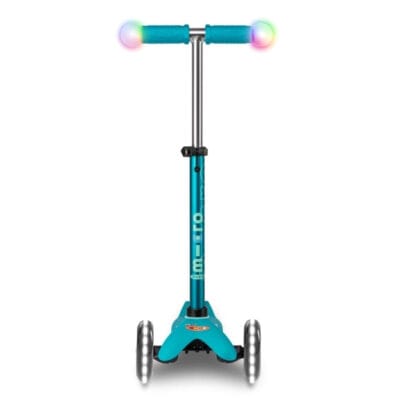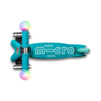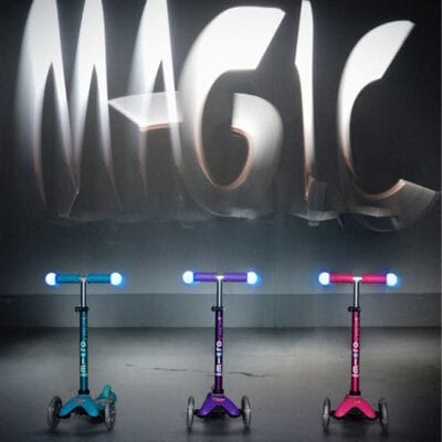 Mini Micro Deluxe Magic Aqua LED donosi idealan spoj sigurnosti, dizajna i inovacije za djecu uzrasta od 2 do 6 godina. Zahvaljujući senzoru dodira, ručke romobila zasvijetle u pet čarobnih boja čim ih dijete uhvati, čineći svaku vožnju uzbudljivijom i sigurnijom – naročito pri slabijem osvjetljenju.