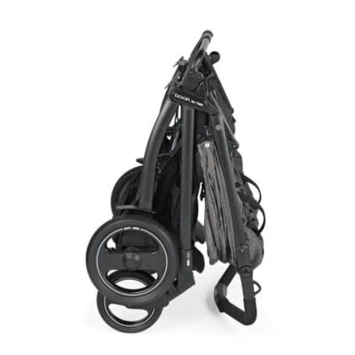 Konstrukcija kolica izrađena je od aluminija, što je čini izuzetno stabilnom. Uz to odlikuje se s „Soft Ride“ kotačima koji su veliki i imaju 12 kuglični ležaja i tako ublažavaju učinak neravnih terena i pružaju djetetu veću udobnost. Kočnica na stražnjim kotačima je centralna i koči oba stražnja kotača, dok se prednji kotači mogu zaključati u jedan položaj jer su rotirajući za 360 °. Peg Perego je omogućio jednostavno skidanje kotača s konstrukcije, kako bi uštedjeli na prostoru u prtljažniku ili ih jednostavnije stavili. Konstrukcija je sklopiva kao knjiga, jednostavno i jednom rukom u tren sklopite kolica koja mogu samostalno stajati bez oštećivanja tkanine ili nekog drugog dijela kolica. Ručka kolica je spojena i presvučena eko kožom i tako omogućuje jednostavno upravljanje jednom rukom. Jako važno je naglasiti i veliku shopping košaru koja ima 3 džepa, a sve to kako bi ono što Vam treba uvijek bilo pri ruci.