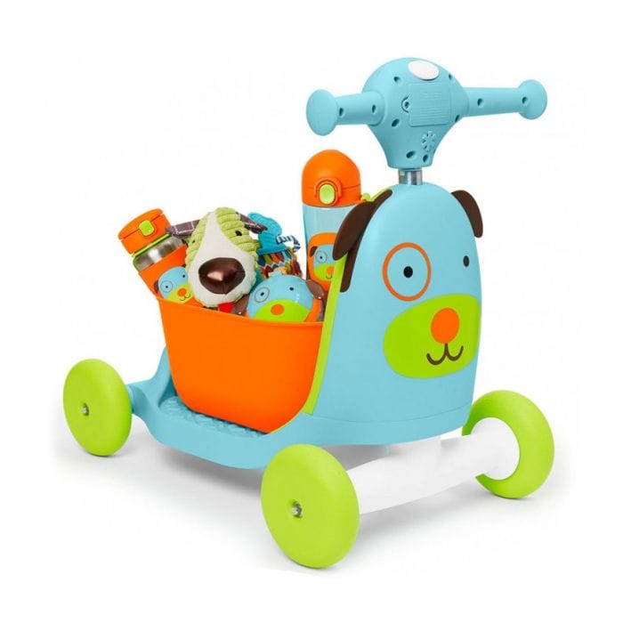 1. faza: hodanje / pomaže malim šetačima kada uče hodati i omogućava im da guraju i povlače omiljene igračke sa sobom. 2. faza: guralica se koristi sa sjedalom za vožnju i odlična je za djecu koja uče kretanje odgurivanjem od pod. 3. faza: Kako mališani rastu, lako se pretvaraja u skuter