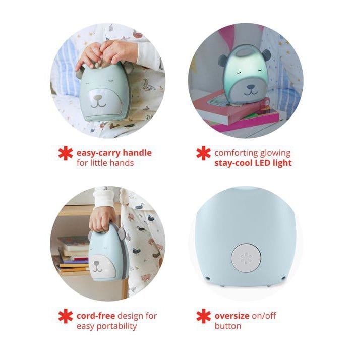 Upoznajte novog prijatelja za spavanje svog mališana! Dizajnirana za poticanje noćne neovisnosti, naša preslatka svjetleća noćna svjetiljka s medvjedom tješi mališane u mraku s umirujućim sjajem i prijateljskim licem. Upravo prave veličine za male ruke, prijenosni dizajn ima ručku koja se lako hvata, hladno LED svjetlo i praktičnost bez kabela tako da ga djeca lako mogu ponijeti kamo god krenu.
