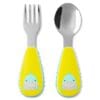 Set se sastoji od vilice i žlice izrađenih od nehrđajućeg čelika sa silikonskim drškama. Maleni pribor idealan je za dječje ručice, a silikon omogućava da vilica i žlica ne skližu za vrijeme jela.